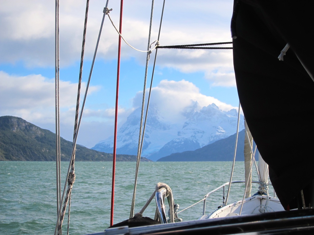 Heading up Seno Última Esperanza, our hopes were high for scenic over-kill. But the clouds that were hanging just at the edge of the mountains, both when we came and went, weren't going to leave just because we were there.